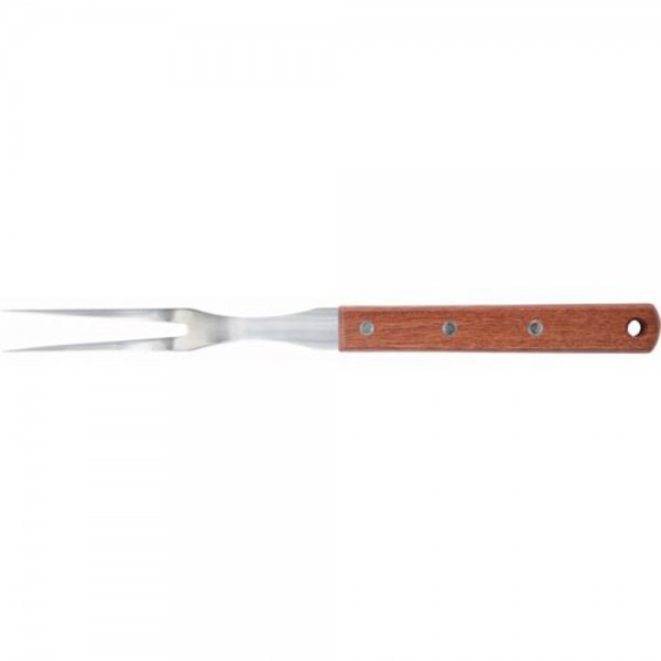 The Winco KPF-612 is a stainless steel pot fork with a length of 12-5/8 inches. This long fork is great to use when grilling or holding roasts and turkeys in place while carving. The fork also features a wooden handle for a comfortable grip.