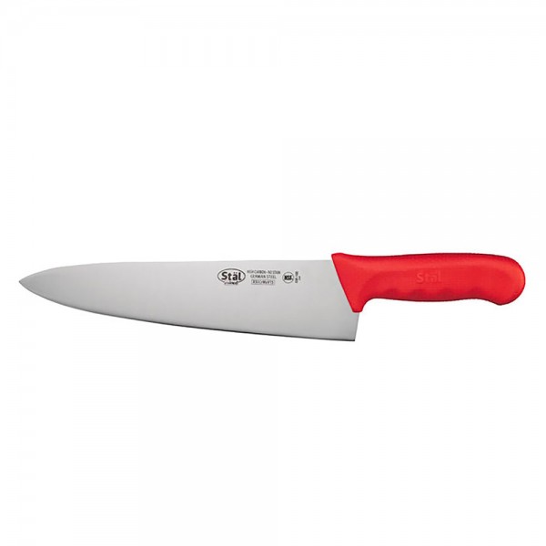 Winco KWP-100R Stal 10" Chef's Knife with Red Handle