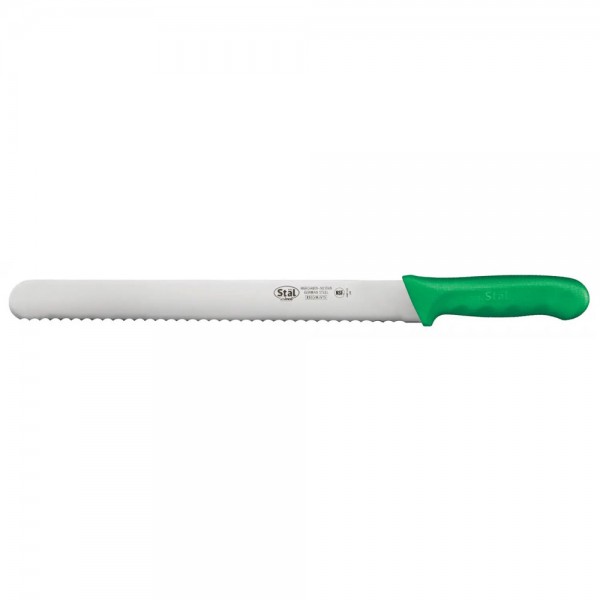 Winco KWP-121G Stal 12" Straight Bread Knife with Green Handle