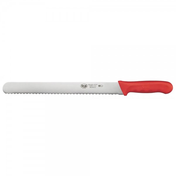 Winco KWP-121R Stal 12" Straight Bread Knife with Red Handle
