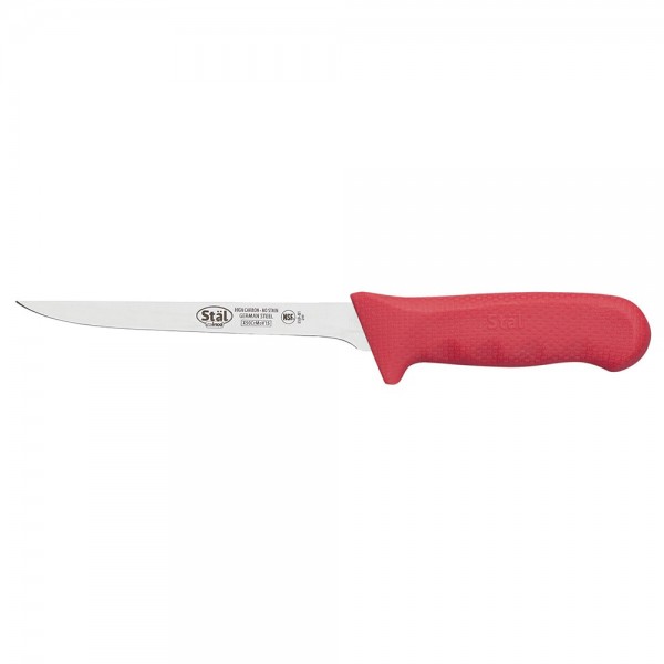 Winco KWP-61R Stal 6" Straight Boning Knife with Red Handle