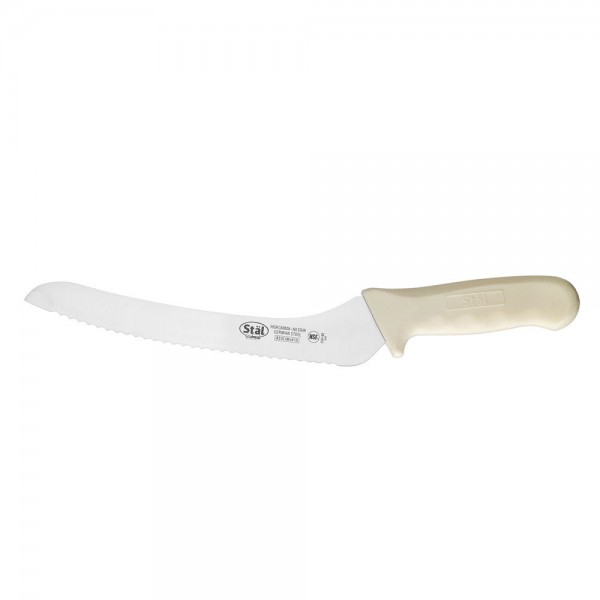 Equipped with a precision-forged X50 Cr MoV15 German steel blade, this exceptionally durable knife provides unparalleled sharpness allowing it to easily slice through thick crusts. To prevent cross-contamination, this bread knife has a blue handle for easy identification. Thanks to its ergonomic polypropylene handle, this knife provides a non-slip, comfortable grip for excellent control while its protective finger guard is an additional safety feature.