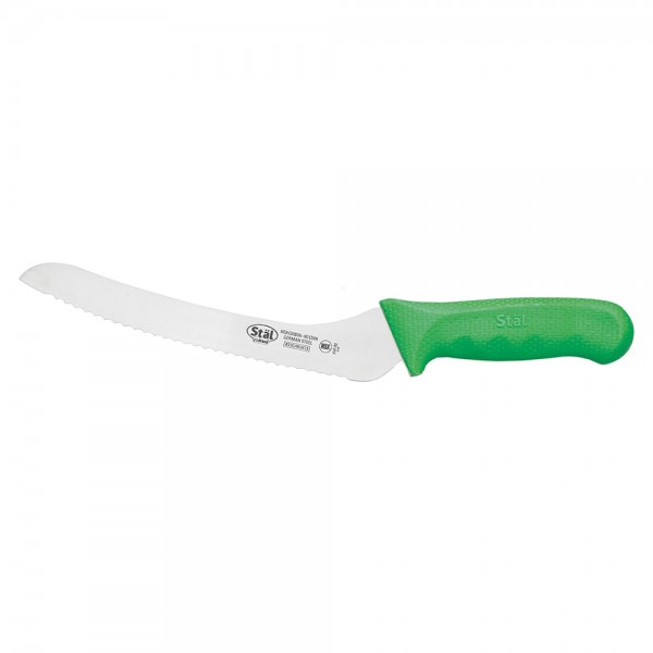 Equipped with a precision-forged X50 Cr MoV15 German steel blade, this exceptionally durable knife provides unparalleled sharpness allowing it to easily slice through thick crusts. To prevent cross-contamination, this bread knife has a green handle for easy identification. Thanks to its ergonomic polypropylene handle, this knife provides a non-slip, comfortable grip for excellent control while its protective finger guard is an additional safety feature.