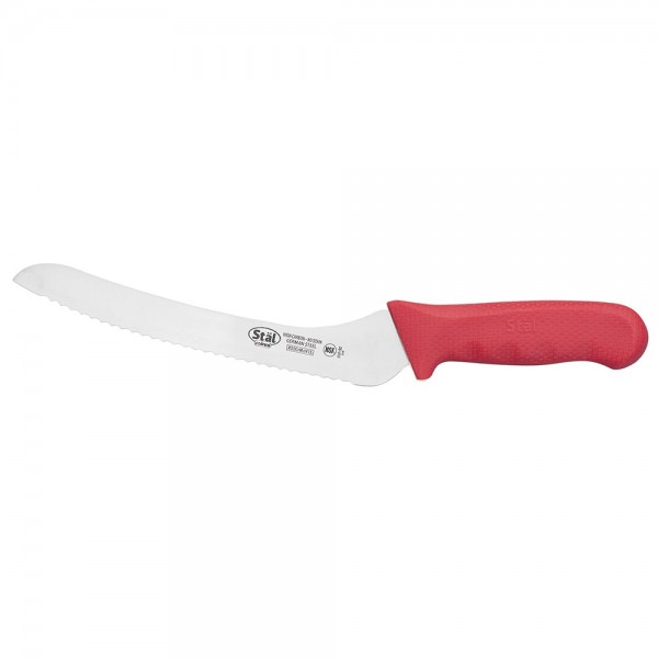 Equipped with a precision-forged X50 Cr MoV15 German steel blade, this exceptionally durable knife provides unparalleled sharpness allowing it to easily slice through thick crusts. To prevent cross-contamination, this bread knife has a red handle for easy identification. Thanks to its ergonomic polypropylene handle, this knife provides a non-slip, comfortable grip for excellent control while its protective finger guard is an additional safety feature.