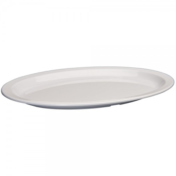Winco MMPO-1510W White Narrow Rim Melamine Oval Platter, 15-1/2" x 10-7/8"