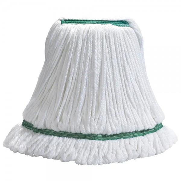 Winco MOPM-M 14 oz Medium Wet Mop Head, White with Green Bands