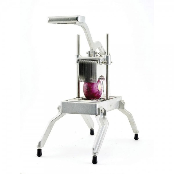 The Winco OS-188 is a Kattex manual onion slicer with a 3/16" blade. This model is constructed from aluminum and features durable stainless steel blades. There is a lever handle for quick and easy cuts with one motion. The base features non-skid feet to keep the slicer securely in place while in use. This model is also NSF listed.