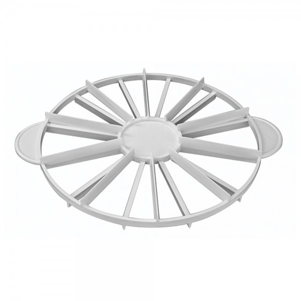Use this double-sided cake marker to pre-mark the top of your specialty cakes and pies. For ease of use, the double-sided cake marker is designed with side handles to keep your hands safely away from the food. Perfect for bakeries, cafes, and restaurants, this cake marker scores cakes up to 10" round for easy slicing and serving.