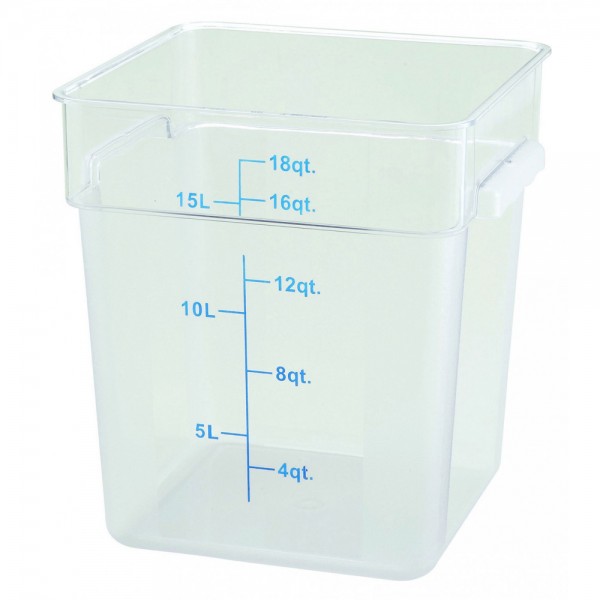 Winco PCSC-18C 18 Qt. Clear Square Polycarbonate Food Storage Container with Blue Gradations