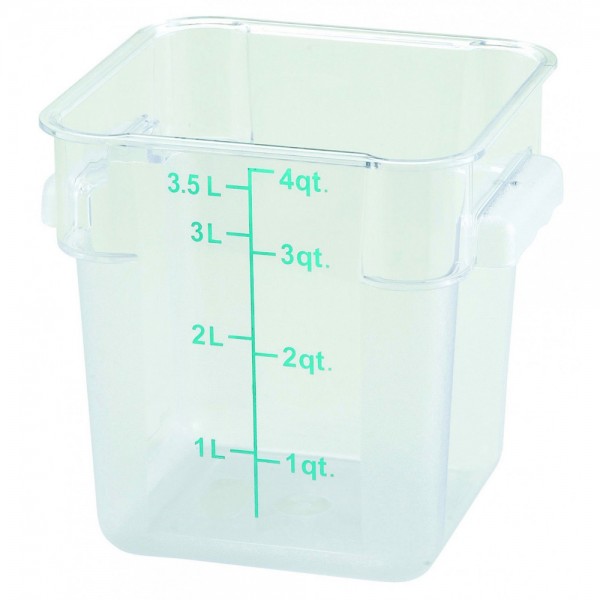 Winco PCSC-4C 4 Qt. Clear Square Polycarbonate Food Storage Container with Blue Gradations