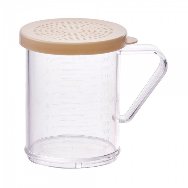 Winco PDG-10B 10 oz. Clear Polycarbonate Dredge with Snap-On Beige Lid