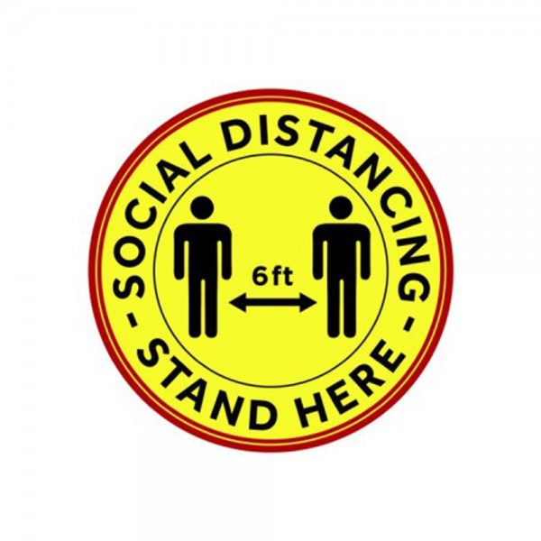 This Winco PFD-12Y social distancing floor decal has a 12" diameter and is anti-slip. Their is a bright yellow backdrop, bold back text and a graphic which helps to draw attention. This floor decal is made of strong material which will hold up in high traffic areas.