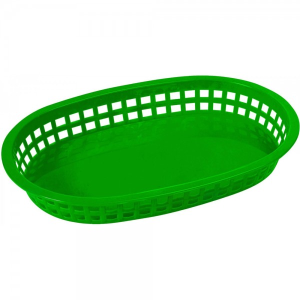 Winco PLB-G Green Oval Plastic Platter Basket, 10-3/4" x 7-1/4"