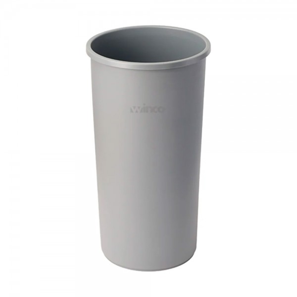 The Winco PTCR-22G is a trash can with a capacity of 22 gallons. It has a slim round shaped design that is great for office or lobby area applications. The funnel top lid is not included with the PTCR-22G.