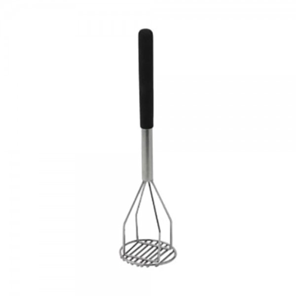 The Winco PTMP-18R round potato masher is nickel-plated, heavy-duty enough to be used for all root vegetables. Built with versatility in mind this masher can be used for potatoes and other soft food like avocados and bananas. Thanks to its stainless steel construction, this potato masher is rust resistant and exceptionally durable. This model also features a chrome plated handle with a textured polypropylene sleeve for a comfortable grip.