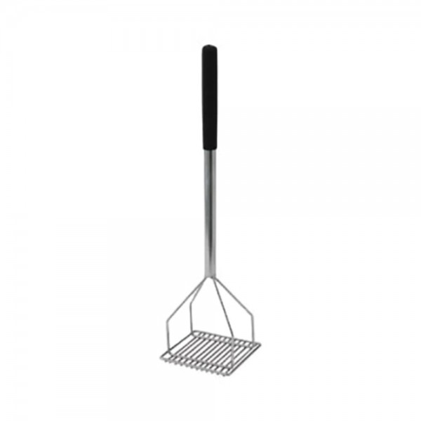 The Winco PTMP-24S square potato masher is nickel-plated, heavy-duty enough to be used for all root vegetables. Built with versatility in mind this masher can be used for potatoes and other soft food like avocados and bananas. Thanks to its stainless steel construction, this potato masher is rust resistant and exceptionally durable. This model also features a chrome plated handle with a textured polypropylene sleeve for a comfortable grip.