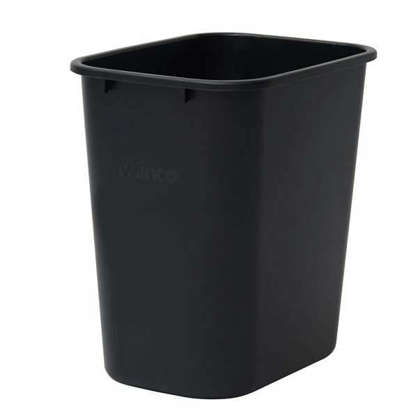 Winco PWR-28K 28 Qt. Black Rectangular Wastebasket