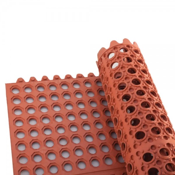 Winco RBMI-33R 3" x 3" Red Rubber Interlocking Floor Mat