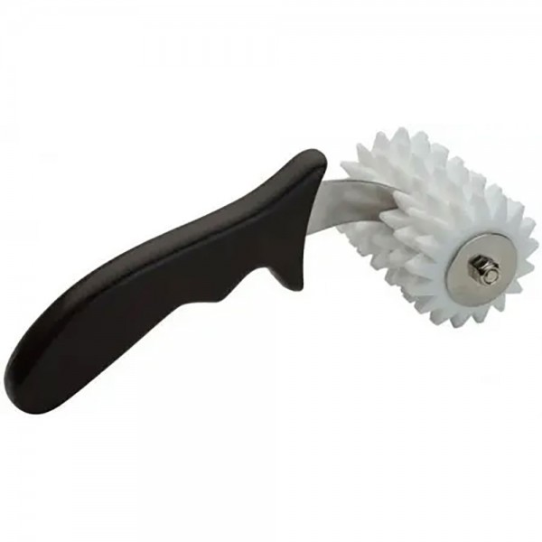 The Winco RD-4P is a dough docker with a 4 inch wide head. This dough roller docker features 6 independently spinning wheels to ensure excellent performance. Constructed from plastic, this docker is economical and exceptionally durable to serve your business for years. Equipped with a black plastic ergonomic handle, this dough roller docker is also comfortable to use.