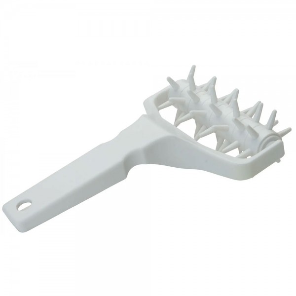 The Winco RD-5P is a dough docker with a 5" wide head. This dough docker is designed with a plastic barrel with 6 independently spinning wheels that easily perforate even the largest sheet of pizza, pie, or tart dough. Ideal for piercing dough to prevent bubbles from forming during baking. Made from high quality materials, this dough docker is durable enough to resist breaking and will retain its shape even after years of use.