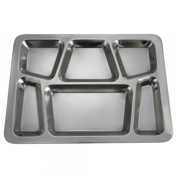 Winco SMT-2 15-1/2" x 11-1/2" Stainless Steel 6 Compartment Mess Tray