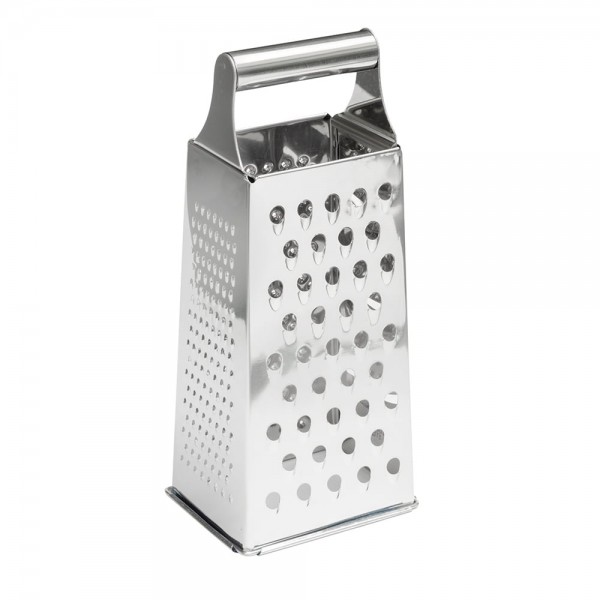 The Winco SQG-1 is a 9 inch tall rectangular tapered box grater. Use this four sided, tapered grater for grating cheese, lemon peels, ginger and other types of food. Thanks to its handle, this grater provides ease of handling during use and transport.