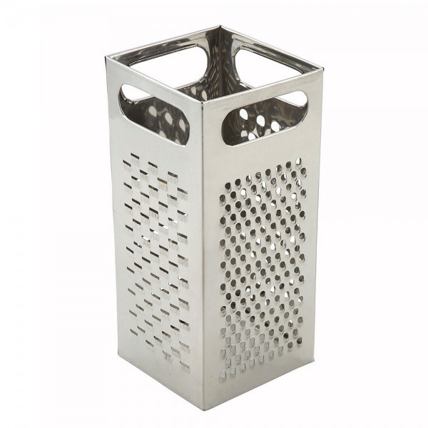 The Winco SQG-4 is a 9 x 4 inch box grater. Use this four sided box grater for grating cheese, lemon peels, ginger and other types of food. Thanks to its handle, this box grater provides ease of handling during use and transport.