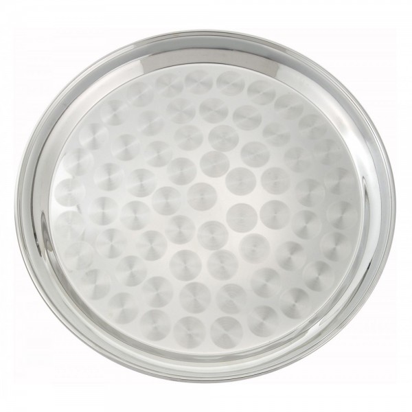 Winco STRS-16 Round Stainless Steel Swirl Service Tray, 16"