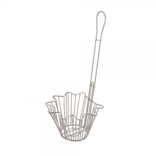 Perfect for molding tortillas into an attractive bowl shape, this kitchen tool is a great addition to any fast-paced food service establishment. Built with a long handle, this salad bowl keeps your hands away from hot grease during cooking. This taco salad bowl basket is easy to clean, has a high temperature tolerance, and will endure heavy duty use.