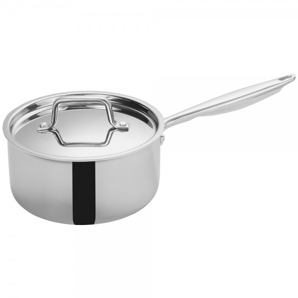 A versatile addition to any kitchen, the Winco TGAP-4 sauce pan is oven safe up to 550° F and can be used on a stove-top, in the oven, or under broiler. Reduce sauces and cook stews with style and comfort using this induction ready sauce pan. The TGAP-4 features a tri-ply construction consisting of a magnetic stainless steel exterior, an aluminum core, and an 18/8 stainless steel interior cooking surface. This sauce pan comes with a tight-fitting lid that traps in moisture and helps maintain consistent temperatures. Use it in your commercial kitchen to cook vegetables, sauce, stew and more.