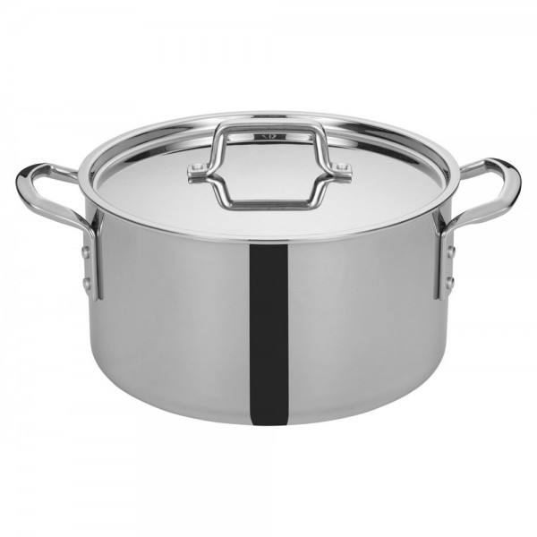 Winco TGSP-12 Stainless Steel 12 Quart Tri-Gen Tri-Ply Induction Ready Stock Pot with Cover