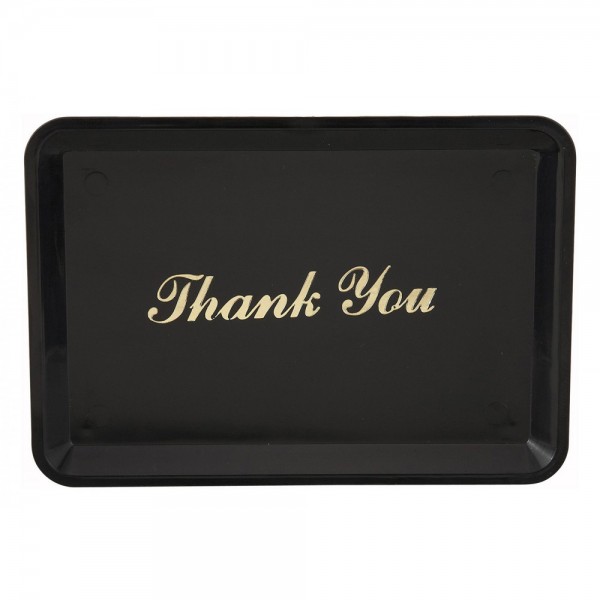 Winco TT-46 6 1/2" x 4 1/2" Black and Gold Thank You Tip Tray