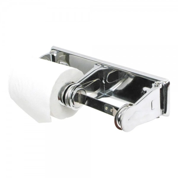 Made of a durable metal, this toilet paper dispenser will stand up to your highly trafficked areas. It holds two 4" rolls to make replacing quick and easy. This dispenser features a pilfer-proof locking device with brake spring action to make sure to easily dispense the paper. It has a bright chrome finish to give it a modern look.