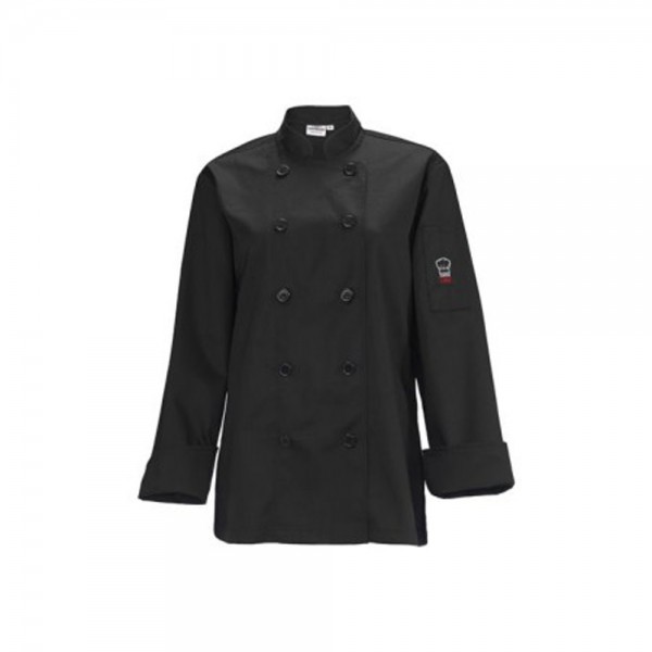 Winco UNF-7KM Women's Black Long Sleeved Tapered Fit Chef Jacket, Size M