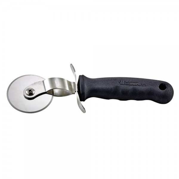 The Winco VP-315 is a small pizza cutter with a 2-1/2" diameter stainless steel blade. For safe and easy handling, this item is built with a comfortable, non-slip, soft grip handle for a well-balanced hold. This model is also dishwasher safe and NSF listed.
