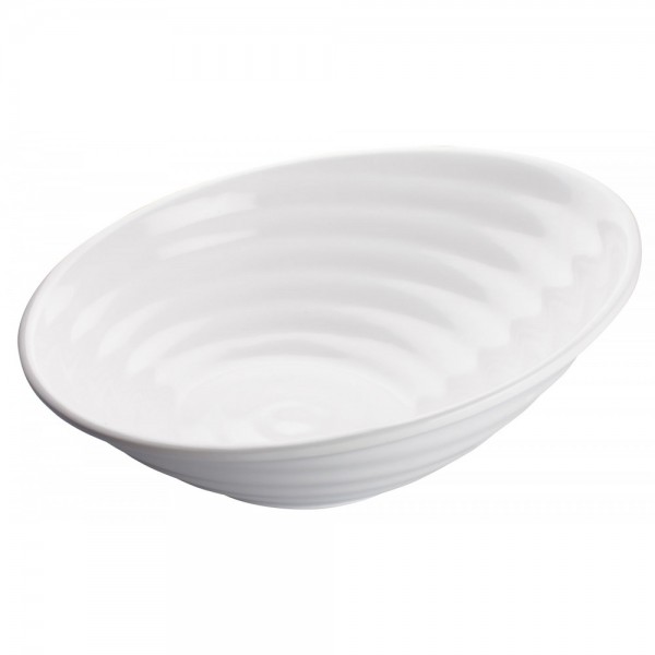 Perfect for indoor and outdoor use, this attractive angle bowl is made from top quality melamine that provides unbeatable durability and longevity. Designed to capture the look of delicate ceramic, this bowl boasts a pristine white finish with a cascading rim. A versatile addition to any dinnerware collection, this piece features an angled rim, adding a contemporary touch while increasing product visibility. A must-have in any restaurant or food service venue.