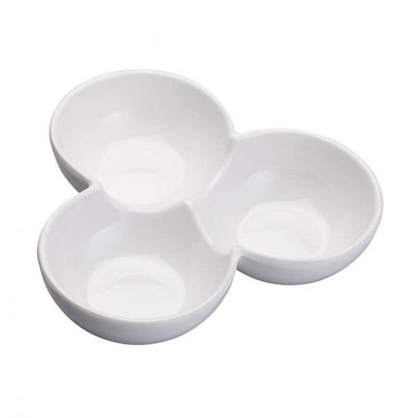 Perfect for both indoor and outdoor use, this trio bowl is made from break-resistant, high quality melamine that captures the look of delicate ceramic while being exceptionally durable. The three sections of this bowl allows you to serve different sauces or condiments simultaneously, making it ideal for restaurants or food service venues.