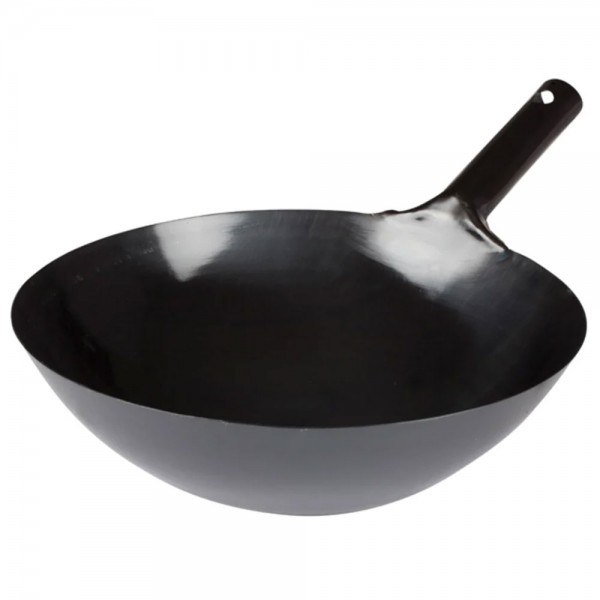 Cook like a professional chef with this 14" Japanese style wok with welded handle. The round bottom and carbon steel construction conducts heat quickly and evenly, requiring less oil for stir-fry dishes. With the tall sloping walls, food will stay in the wok while tossing and sauteing, preventing messes and spills on stove tops. Use this wok to steam vegetables, deep fry meat, or roast salty nuts. This wok features an integrated handle with welded joints that enhance strength and durability allowing it to withstand years of use.