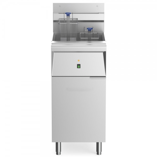 No gas? No problem with Wowcook CF-40E-208-1 40 lb. electric floor deep fryer. Designed to be efficient and easy to use, this 15.75" deep fryer includes a stainless steel fry pot rated for 40 lb. of oil. Two twin baskets are included and the unit can support a single wide basket desired. The built-in thermostat assures quick recovery time. Slanted bottom with drain pipe makes draining and cleaning simple. Units ship pre-wried for 1 Phase but can be converted in the field by your electrical at installation from Single Phase to 3 Phase or 3 Phase to Single Phase. *This unit should be installed by a licensed electrician.