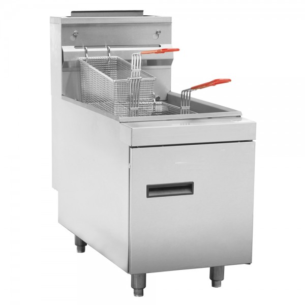 This durable and reliable natural gas countertop fryer is essential to commercial kitchens that serve hot, fresh fried foods. It delivers 66,000 BTU worth of power for high-volume diners, cafeterias, and quick service restaurants. This unit has a 35 lb. capacity, which is just ideal for dinners, cafeterias, and small restaurants to keep producing basket after basket of fried goodies. Whats more, the double twin fryer baskets are made-for-convenience with a stainless steel basket hanger it allows your staff to start frying immediately by filling the tank.
