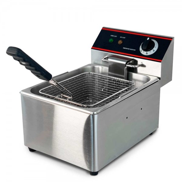 Description Easily deep fry a wide variety of fried foods with this 15lb commercial countertop electric deep fryer. 120V power means these units can easily fit into any kitchen without the need for a special line. The light compact design makes it an easy addition to your commercial kitchen countertop. The all stainless steel construction means it will stay in your kitchen for years to come. The frypot easily removes for simple cleaning and a built-in wire mesh keep crumbs and food debris. Safety features include high temp limit, anti-slip feet make this a larger and more powerful option than Avantco F100 or other smaller units.