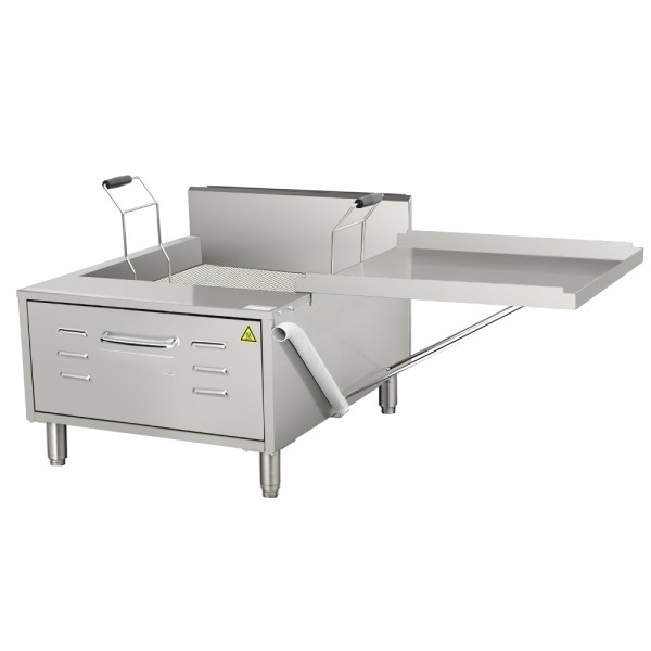 Flexible Drain Tray The smartly designed drip tray also functions as a lid, maintaining the cleanliness of the fry pot during periods of non-use. Further convenience is provided by the front-mounted drain and extension pipe, streamlining the process of oil disposal into either an oil filtration machine or oil shuttle.