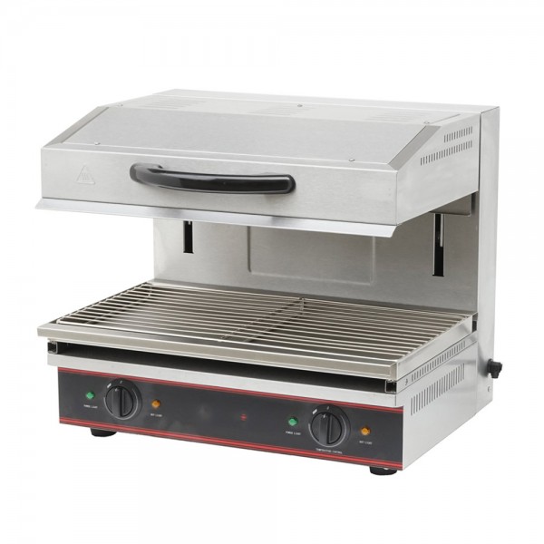 Stainless Steel Construction Constructed of heavy-duty stainless steel, this salamander is built to withstand the rigors of constant use. The upper housing is equipped with polished reflectors that help to direct heat towards the cooking area, ensuring that food is cooked evenly and thoroughly.