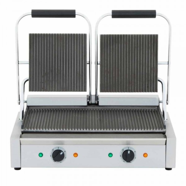 Wowcook PG-2 Double Commercial Panini / Sandwich Press, with Grooved Surface, 120V