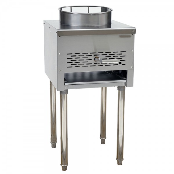 User-friendly Design This wok range adopts gradual slope design to reduce spill-over. A pull out crumb tray that catches loose vegetables and other food overflows to expedite cleanup. What's more, its 14 3/8" legs with adjustable feet make sure that your unit is level for safely cooking.
