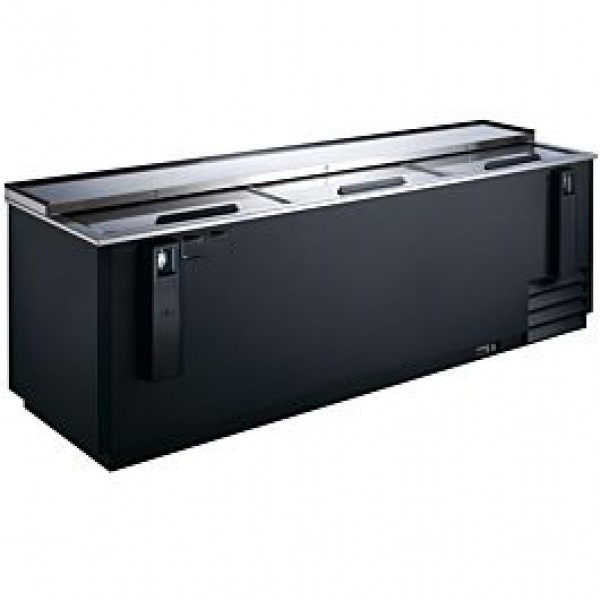 Description Store and cooler your beer bottles and sodas in your bar with this 95" horizontal reach-in black bottle cooler. At 28" front to back, this commercial beer bottle refrigerator will fit perfectly into a bar, while providing ample storage with its 27 cu. ft. capacity. This unit uses HYDRO-CARBON R290 refrigerant, which is environmentally friendly and more efficient than R134a/R404a refrigerant. And the 110V plug makes it easy to use, plug in and get to work.