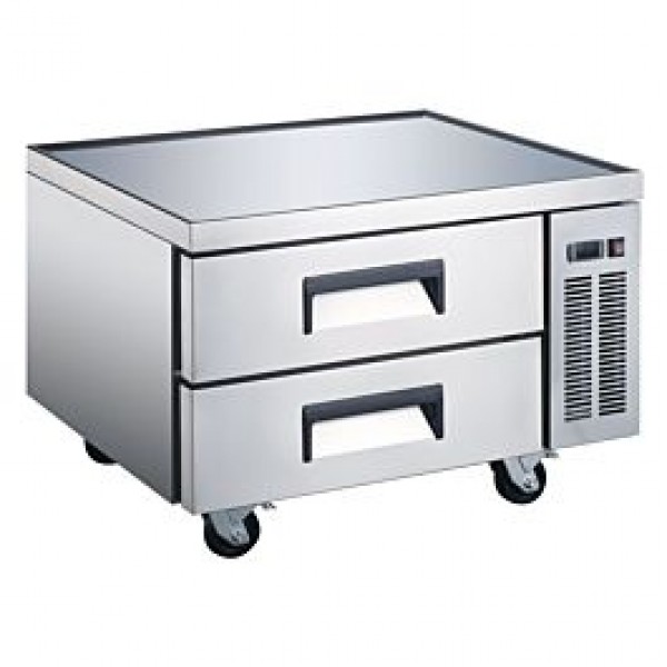 Description Store your refrigerated ingredients within arm's reach right under your commercial griddle or char broiler with this heavy duty 36" refrigerated chef base equipment stand with 2 drawers, helping maximize space usage in your kitchen.The Wowcooler chef base is equipped with heavy-duty casters, durable enough for countertop cook equipment sitting on the top of unit. And two front casters with brake provide the unit with convenient mobility, making it easier to for cleaning.