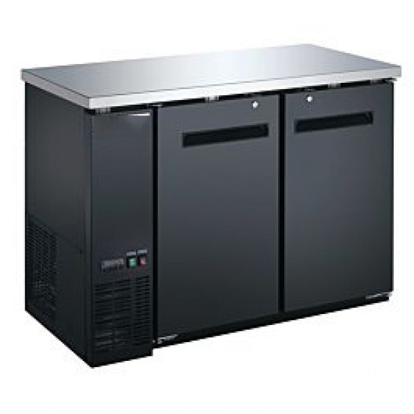 Description Store and display refrigerated beer bottles and beverages behind your bar with this narrow depth 48" undercounter back bar cooler with solid doors. At only 24" front to back, this commercial beer bottle refrigerator will fit perfectly into a bar with limited space, while providing ample storage with its 13 cu. ft. capacity. The heavy duty 304 stainless steel top makes this beer cooler great to use as a worktop refrigerator, and the front breathing compressor allows it to install safely under any counter or bar. All back bars come with interior LED lighting and optional casters are available. Wowcooler back bar refrigerators available in 48, 60, 72" lengths, with swing or sliding glass doors, or with solid black doors.
