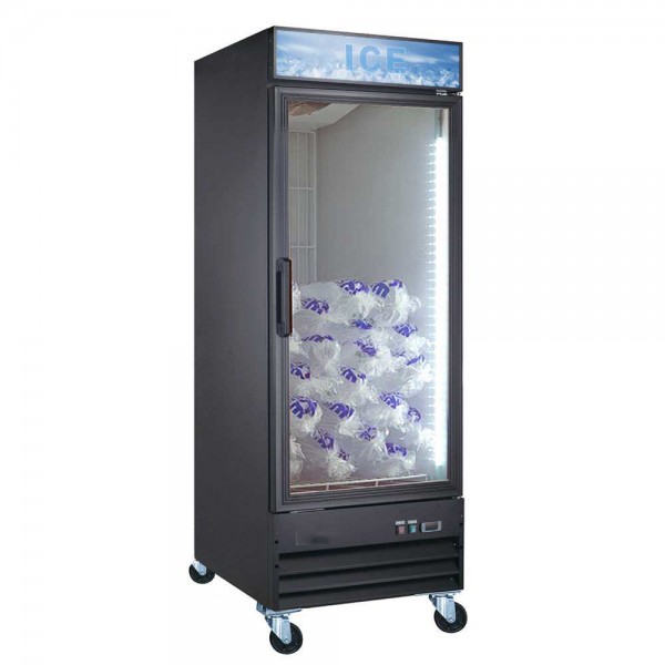 Store and showcase your bags of ice in the 31" Wowcooler glass door ice merchandiser with interior LED lighting. This spacious ice merchandiser keeps temperatures between 18°F and 25 °F, perfect for displaying or store packaged ice. The bottom shelve can support up to 396 lb. of weight, and back wire pane ensures even air flow. An easy to use digital controller allows you to control the temperature, a lighted top panel will attract customers, and the installed casters will make it easy to put the unit in place and start selling.