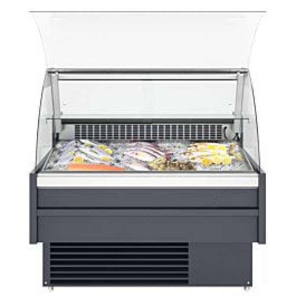 Built-in Ice Bin and Drain Display your raw fish in our refrigerated fish display show cases with built-in ice bin. It also comes standard with drain, so your employees can hose it down to make it easier to clean.
